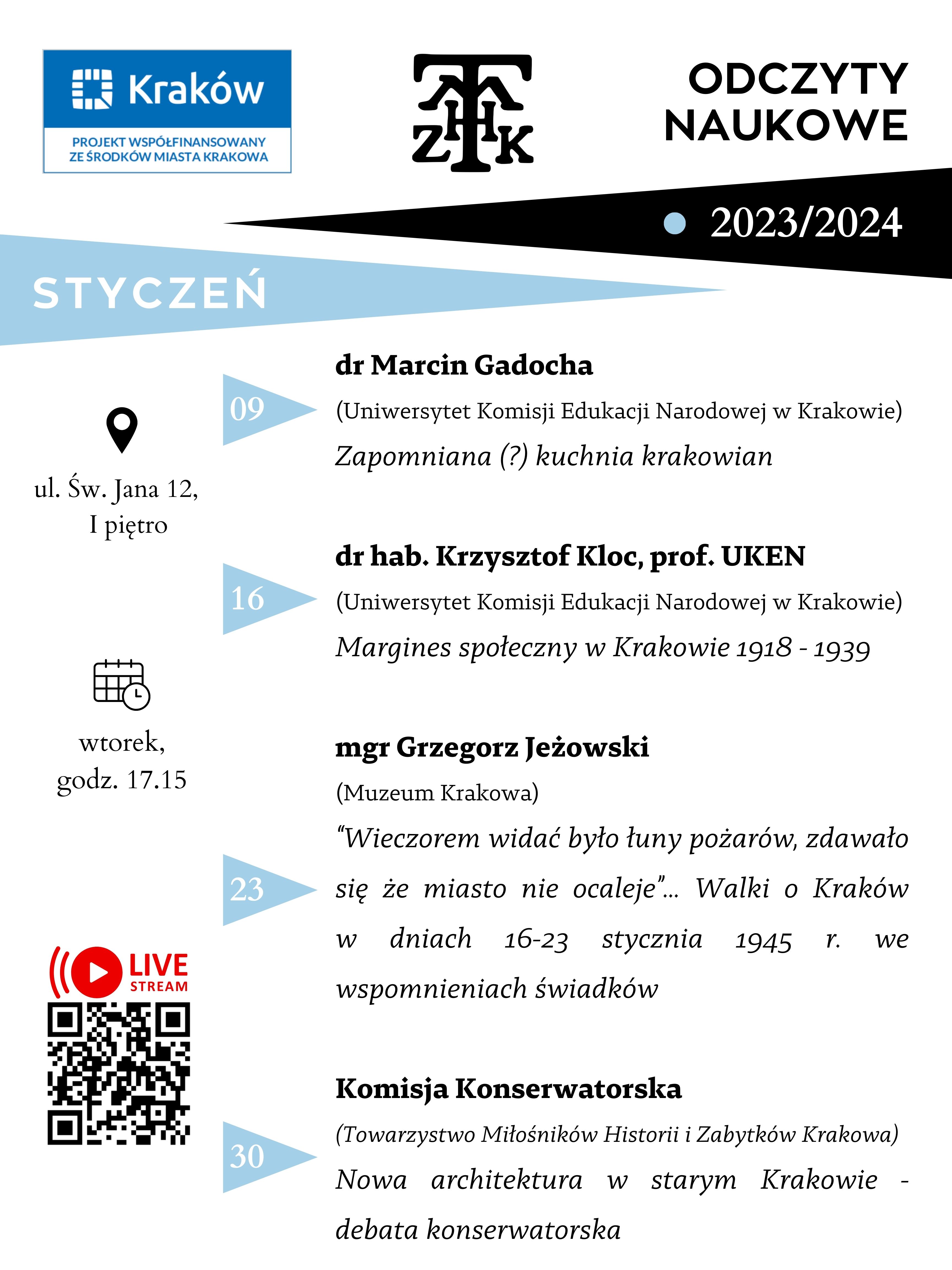 Odczyt odbędzie się w lokalu Towarzystwa przy ul. Św. Jana 12 (I piętro) w Krakowie o godz. 17.15
